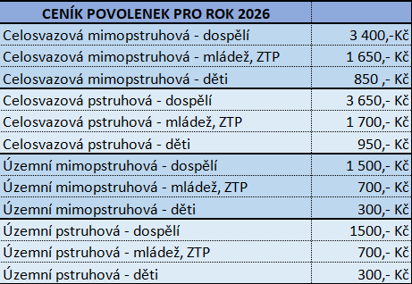 Výdej povolenek do 28.04.2026 v úředních hodinách sekretariátu.